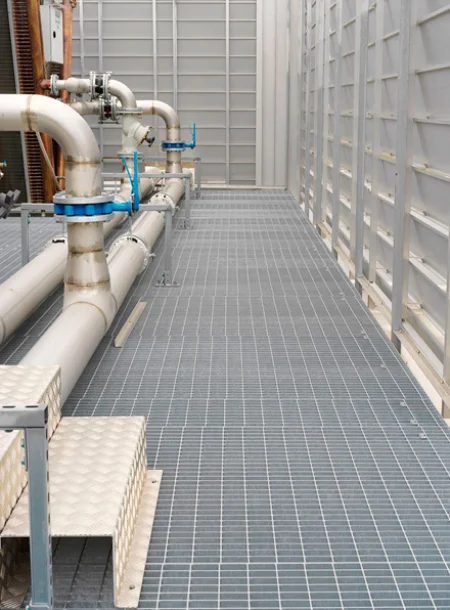 Degraus metálicos antiderrapantes para escadas industriais, plataformas, passarelas e estruturas metálicas.